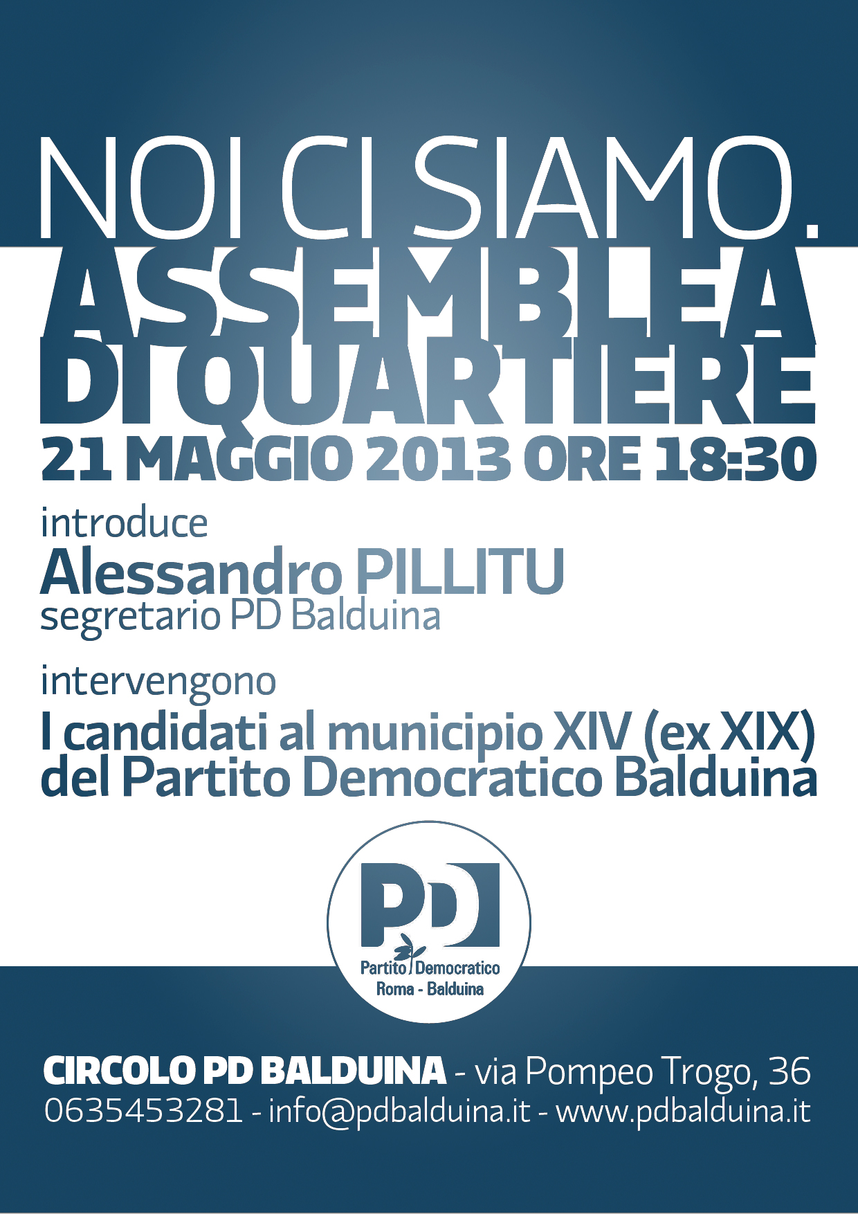 NOI CI SIAMO – ASSEMBLEA DI QUARTIERE da admin | 14 Mag 2013 | Partito Democratico | 0 commenti introduce Alessandro PILLITU segretario PD Balduina intervengono I candidati al municipio XIV (ex XIX) del Partito Democratico Balduina Invia commento Annulla rispostaIl tuo indirizzo email non sarĂ pubblicato. I campi obbligatori sono contrassegnati *Commento * Nome * Email * Sito web Δ