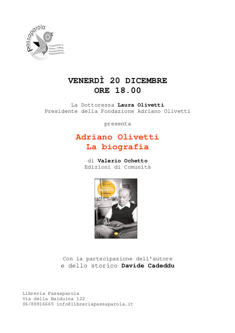 PRESENTAZIONE LIBRO “ADRIANO OLIVETTI LA BIOGRAFIA” da admin | 18 Dic 2013 | Partito Democratico | 0 commenti Invia commento Annulla rispostaIl tuo indirizzo email non sarĂ pubblicato. I campi obbligatori sono contrassegnati *Commento * Nome * Email * Sito web Δ