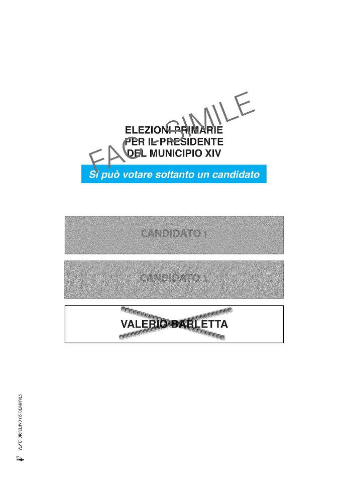 Ecco il fac-simile di scheda per il Municipio XIV (ex XIX):