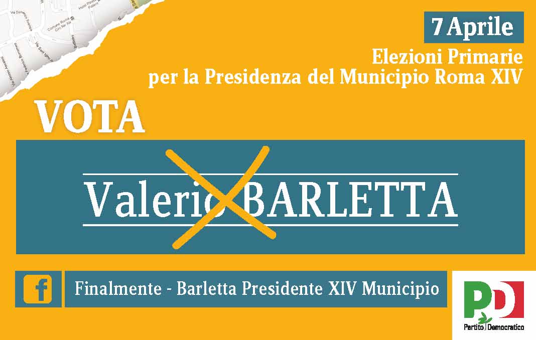 La terza notizia e più importante è che per il Munipio XIV il PD appoggia un unico candidato, Valerio Barletta. Una bella notizia anche perchè Valerio è un nostro giovane consigliere municipale democratico di 27 anni che si è battuto, nelle zone periferiche del nostro Municipio, per la legalità, la trasparenza, la scuola e la cultura.